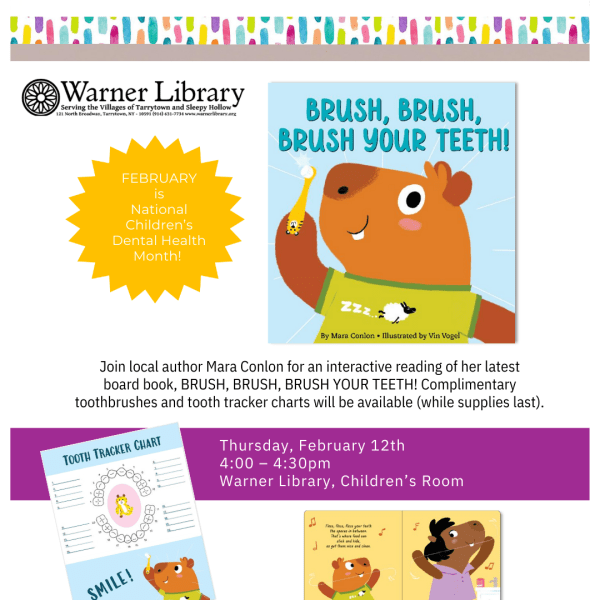The Friends of the Warner Library thanks the following individuals and organizations for their support during its Fall Book Sale: Troop 22 Scouts, Tarrytown, Sleepy Hollow High School, Westover Landscape Design, Regeneron Pharmaceuticals, Peter J. Zambelletti, CPA, Volunteer New York! Since 1958, proceeds from the Friends book sales have gone to…Continue reading “Thank You”