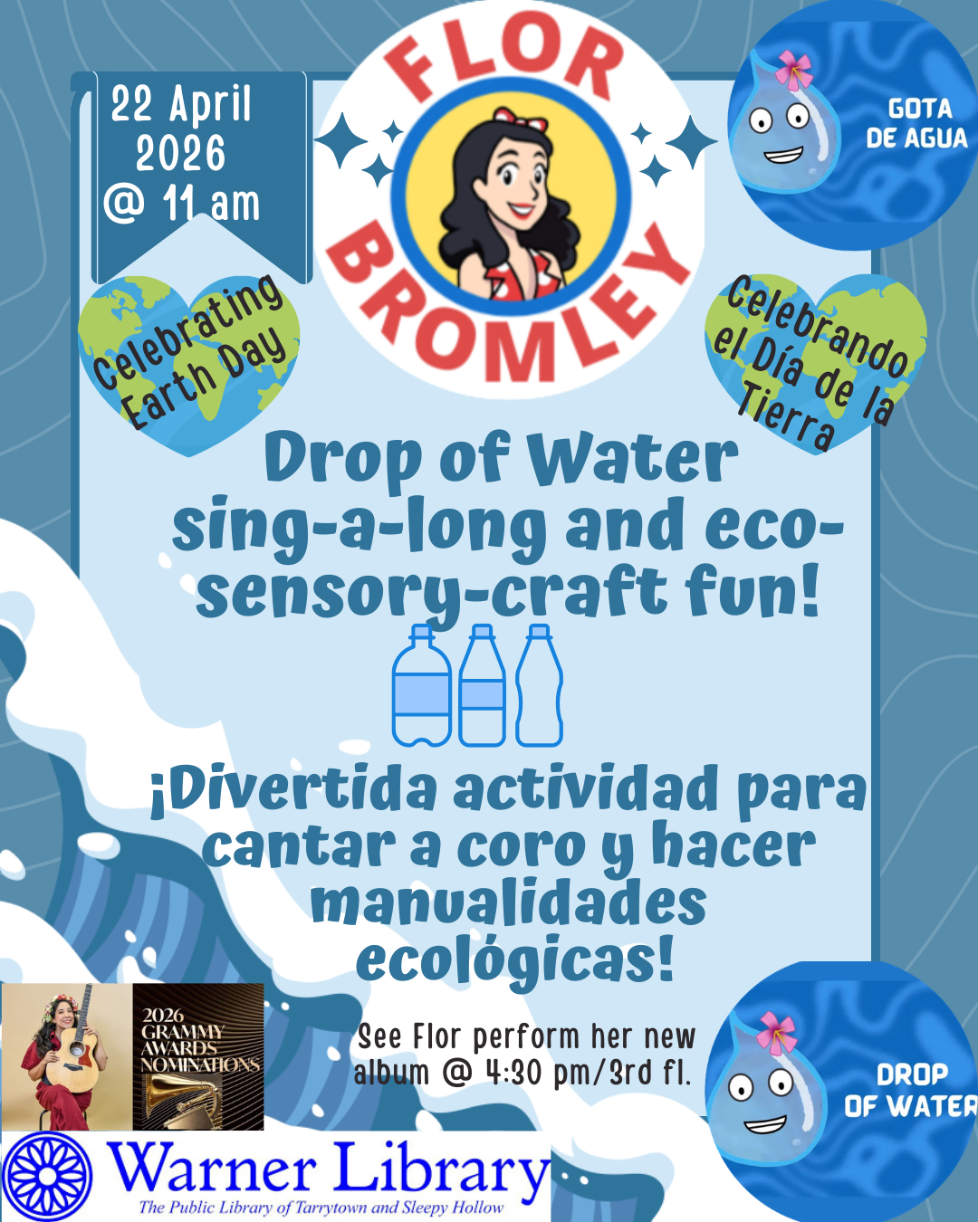 Eco-Sensory Craft Event 30Mar 202630 Mar 2026 Create a sensory bottle while listening to Flor Bromley’s Drop of Water song. Share this: Share on X (Opens in new window) X Share on Facebook (Opens in new window) Facebook